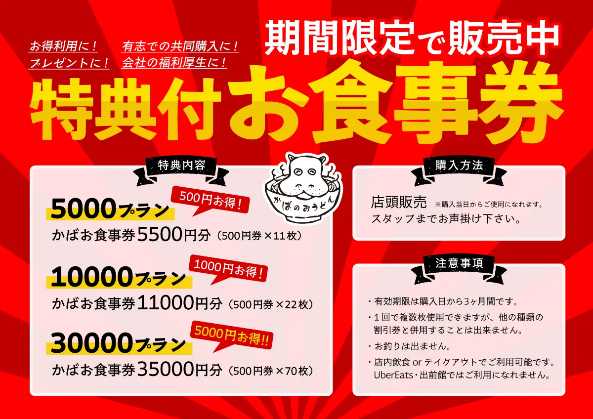 かばのおうどん「特典付 お食事券」を期間限定で販売!